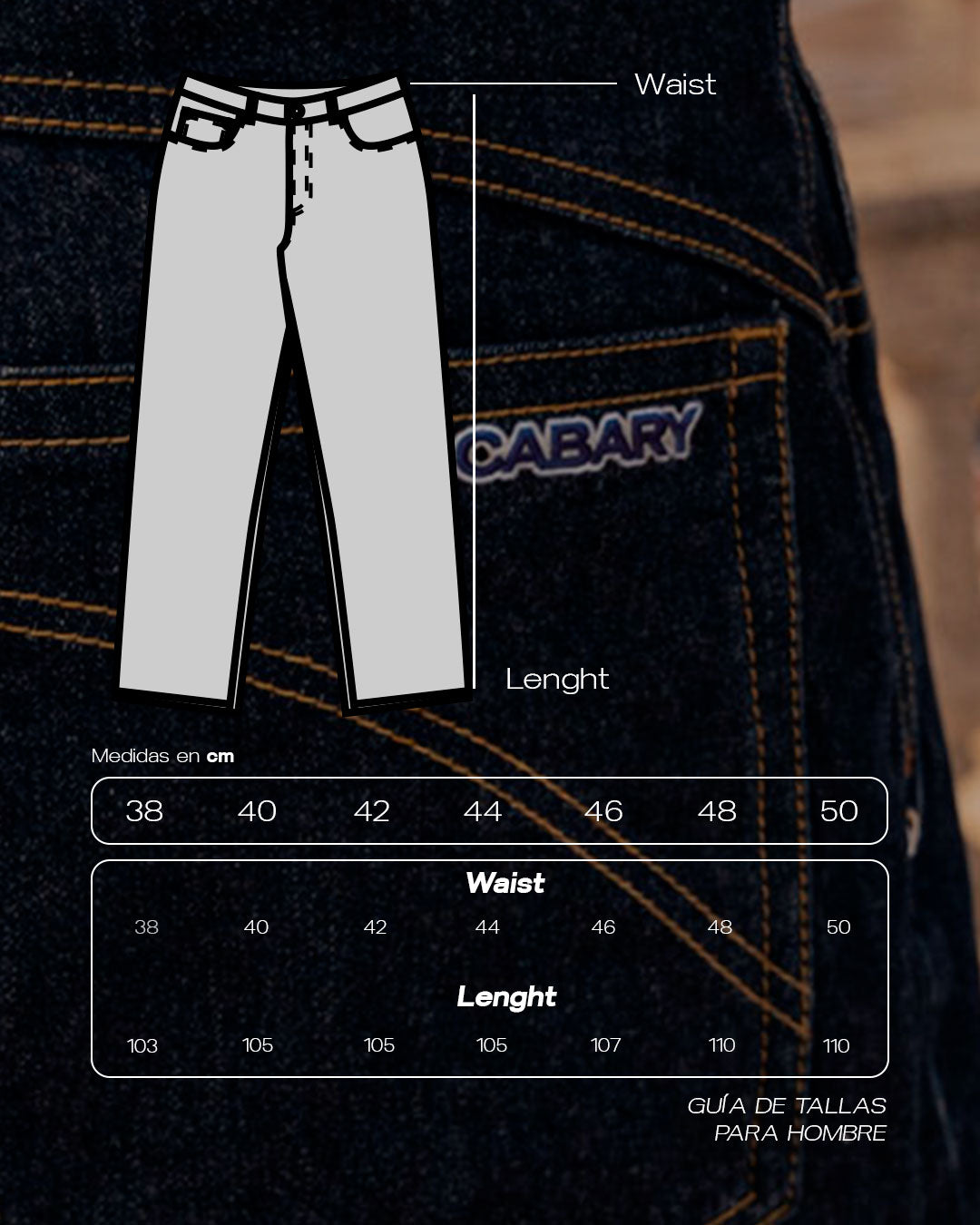 Logo CABARY bordado en el bolsillo trasero.